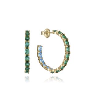 Pendientes aro Viceroy de plata de ley con baño de oro y circonitas en color azul y verde