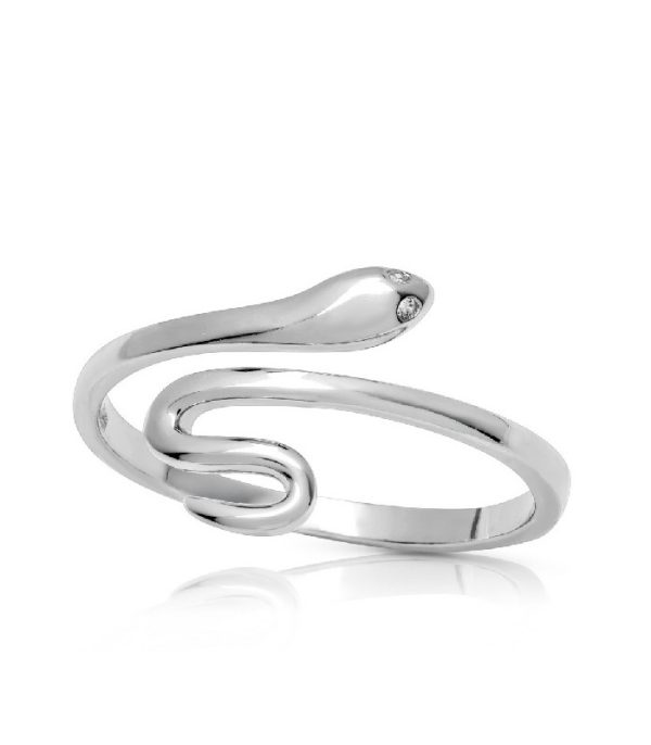 Anillo de plata en forma de serpiente, liso. Al ser un anillo abierto, es ajustable.