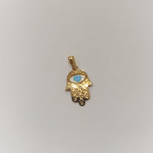 COLGANTE MANO FATIMA Y OJO TURCO ORO 18 KILATES