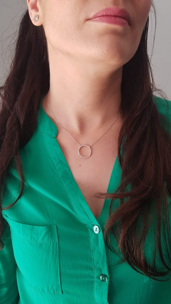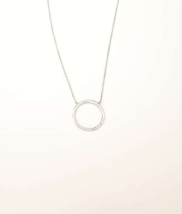 Este colgante está muy de moda, se compone de un círculo de 17 milímetros de diámetro con circonitas en la parte inferior del círculo. Te encantará!