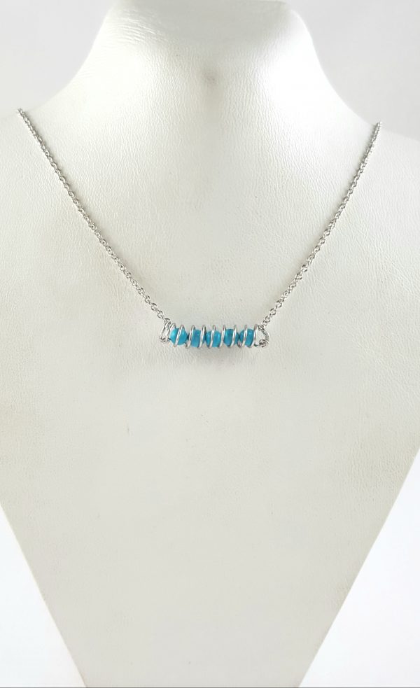 Colgante de plata y turquesas de 4 milímetros alojadas en un muelle de plata. Complemento ideal para este verano, combínalos con los pendientes a juego.