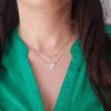 CompareEste es un colgante de moda donde tienes dos collares en uno. Lleva una barra de plata junto con un triángulo de circonitas.
