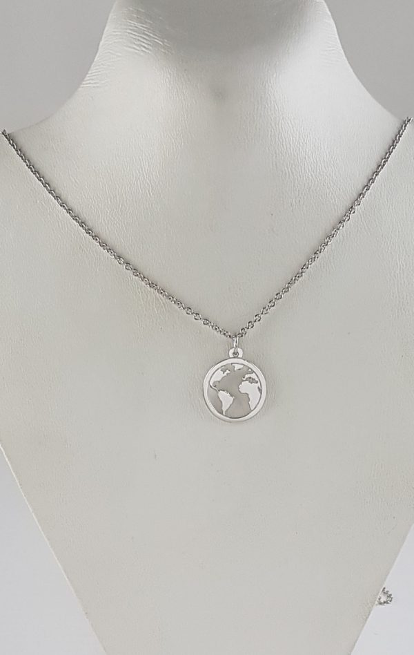 Colgante Mundo mediano en Plata, tamaño 20 milímetros, plata con baño rodio, selecciona el largo de la cadena en el desplegable , fabricado en Valencia (España)