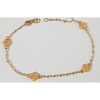 Pulsera comunión con 4 flores con esmalte en oro amarillo 18 kilates, medida de la pulsera 18 centímetros, lleva un asa en el centímetro 16 para no tener que acortar
