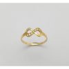 Anillo de Oro 9 kilates con forma de infinito con zirconitas, perfecto para regalar a tu pareja para alguna celebración especial. El peso aproximado total es de 1,25 gramos. El tamaño del infinito es de 12,30 milímetros de ancho y 7,40 milímetros de alto.