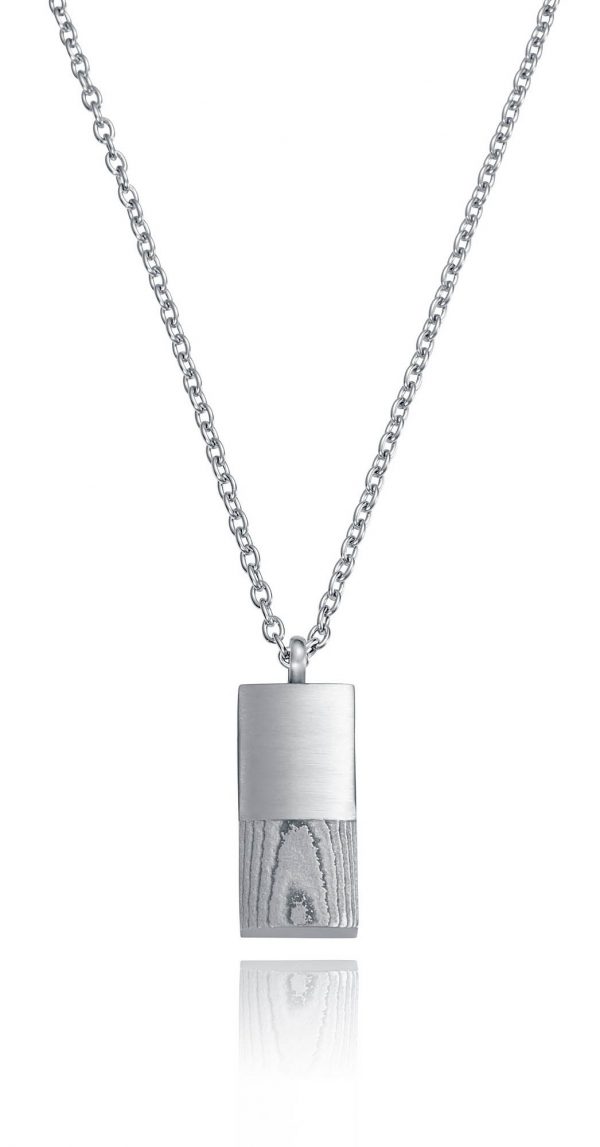 forma rectangular con grabado pavonado en negro , cierre de mosquetón , garantia oficial 2 años.