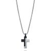 Colgante de Hombre Viceroy Beat de acero tipo cruz bitono (negro y acero efecto satinado). Largo de la cadena 50cm y 5cm de extensión.