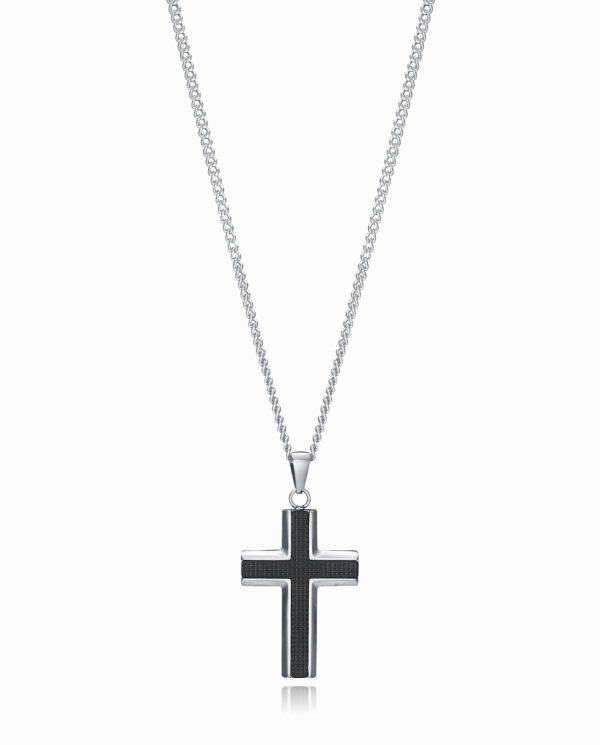 Cruz con pavonado negro , largo de la cadena 50 cm , tamaño de la cruz 30 x 21 milimétros .
