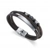 JOYAS VICEROY HOMBREPulsera triple de Viceroy Beat en piel marrón oscuro. Una de ellas es trenzada, otra lleva una placa de acero de 4 centímetros en el centro y otra lleva diferentes motivos. Mide 21,5 centímetros de largo.