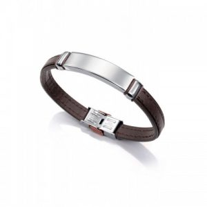 JOYAS VICEROY HOMBREPulsera Viceroy Caballero Piel Negra Cosido Blanco Placa Acero