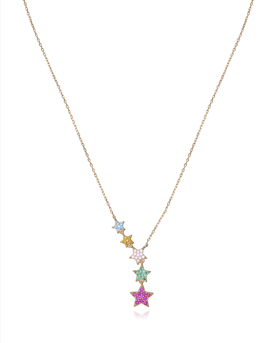 Collar Viceroy Trend de plata de ley con baño de oro con estrellas de circonitas de colores