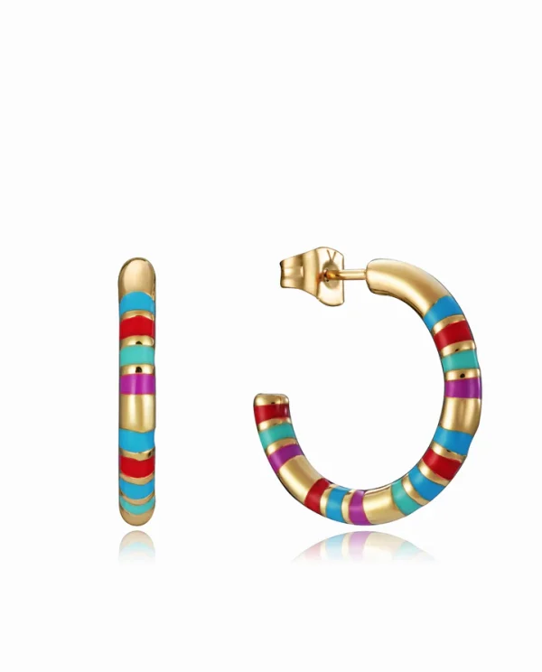 Pendientes Viceroy Chic de acero tipo arco con rayas de esmalte en tonos multicolor.