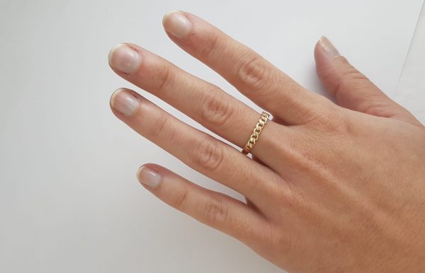 Este anillo está diseñado y fabricado en nuestro taller de Valencia, el oro de 9 kilates te permite llevar joyas de Oro a un precio más asequible, el acabado es identico a una joya de oro de 18 kilates , te encantará.