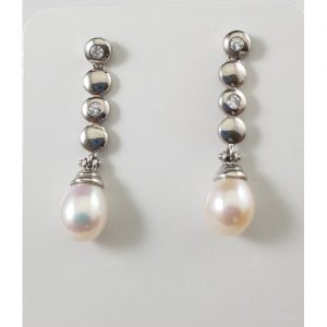 Pendientes largos plata con zirconitas, medida 31 milímetros de altura, bañado en rodio, cierre presión.