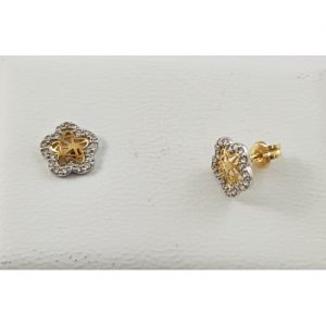 Pendiente Flor Mini Zirconita Oro Amarillo 18Kilates