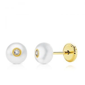 PENDIENTES DE BEBE Y NIÑA OROPendiente de Oro amarillo 18 kilates con zirconita cuadrada. Para bebé o nena.