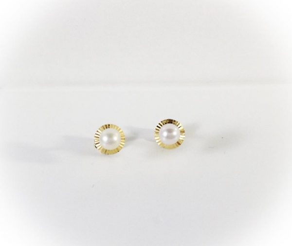 Pendientes bebe casquilla lapidada con perla oro 18 kilates