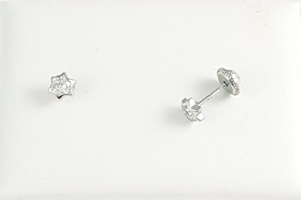 Pendientes Bebé estrella oro blanco 18 kilates y circonitas