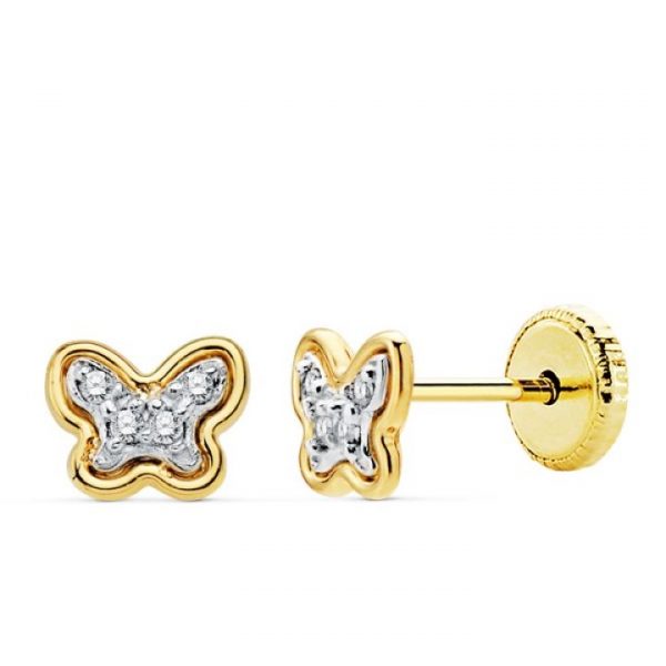 Pendiente de Oro 18 kilates con forma de mariposa y circonitas.