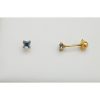 Pendientes para bebé de Oro Amarillo 18 kilates con agua marina sintética, la piedra es cuadrada de 3 milímetros.