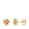 PENDIENTES, PENDIENTES DE BEBE Y NIÑA OROTamaño del pendiente 5,50 milímetros ,circonitas de color , totalmente redondo para evitar que tu bebe pueda engancharse , cierre de rosca , fabricado en España con oro de 18 kilates.