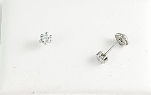 pendientes bebe seis garras oro blanco 18 kilates con circonitas