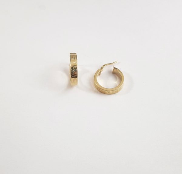 Pendientes de aro con grabado Greca de 17,50 milimetros de diametro ancho del aro 4 milimetros , con cierre con seguro para mas seguridad.