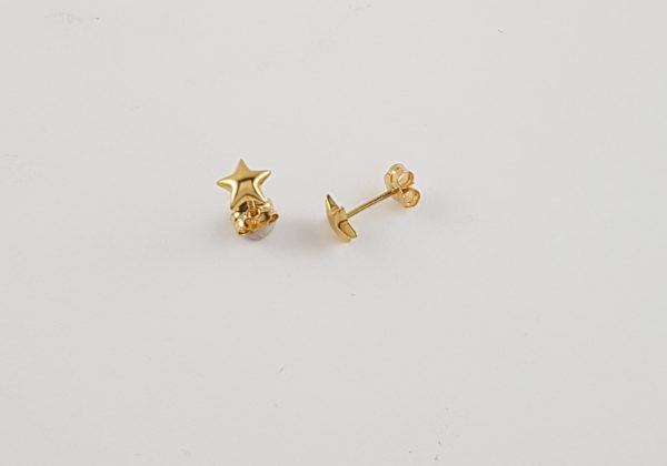 Pendientes estrella oro amarillo 18 kilates, cierre presión, tamaño 6 milímetros.