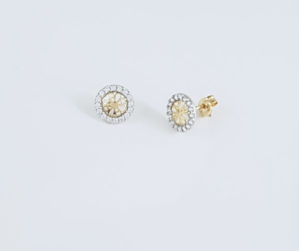 Pendientes flor calada circonitas bicolor oro 18 kilates