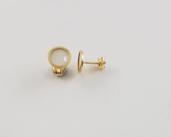 Pendientes redondos oro amarillo 18 kilates con nácar,cierre presión, tamaño 8,10 milímetros.