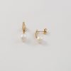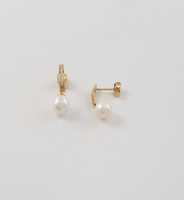 Pendientes oro amarillo 18 kilates y perla con zirconitas, cierre presión.