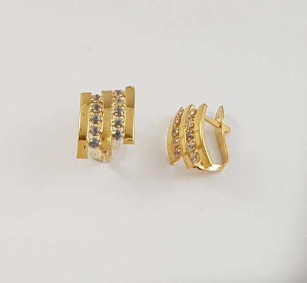 Pendientes oro amarillo 18 kilates con zirconitas, cierre pala valenciana.
