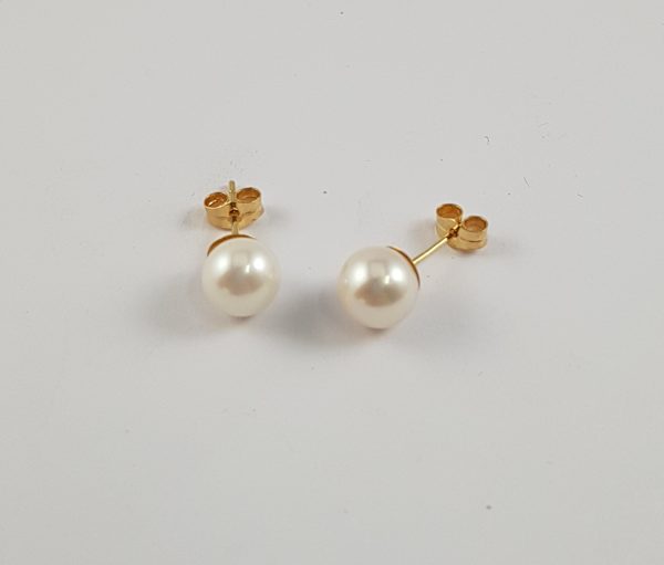 Pendientes perla cultivada 8-8’50mm oro 18 kilates, cierre presion