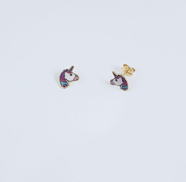 Pendientes unicornio esmalte y oro amarillo, cierre presión
