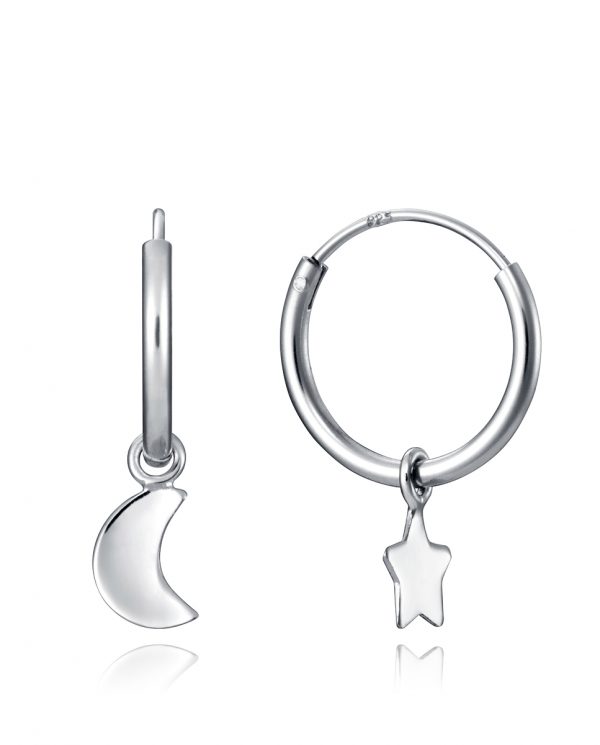 Pendientes aro Viceroy plata luna y estrella,bañado en rodio.