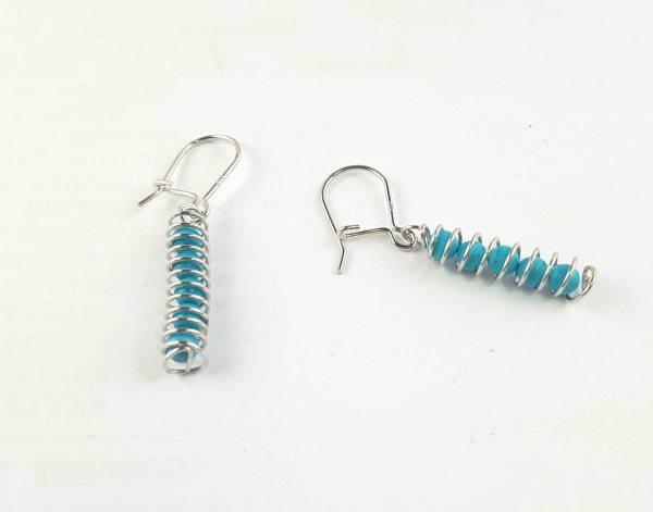 Pendientes de plata y bolitas de turquesas de 4 milímetros alojadas sobre un muelle de plata. Un complemento veraniego que realzará tu moreno. Con cierre hippie.