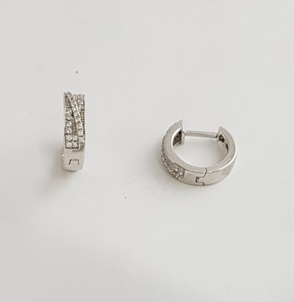 Pendientes Plata aro con zirconitas, bañado en rodio, tamaño 13 milímetros de alto y 3,90 milímetros de ancho.