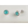 Pendientes Plata Piedra Verde  Azulado  y Zirconitas, cierre presión, bañado rodio, tamaño 8,40 milímetros