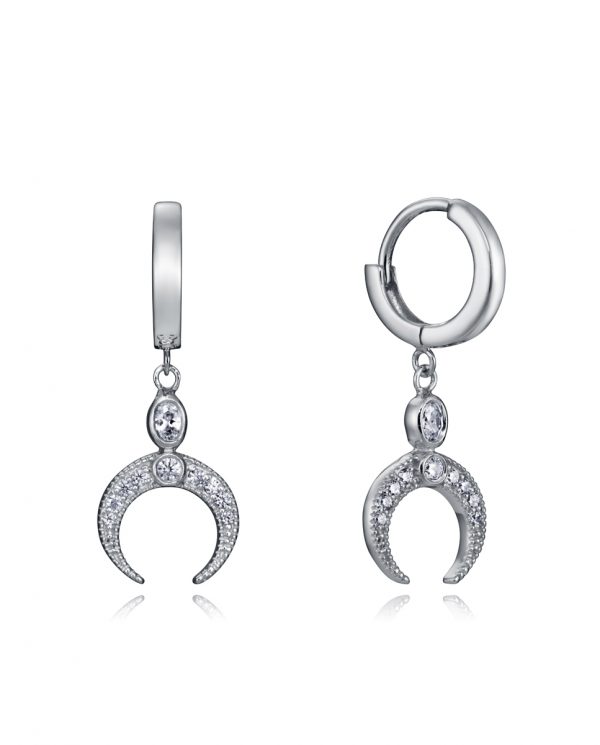 Pendientes Viceroy de plata de primera ley. Pendientes de arito con un motivo que cuelga con movimiento de media luna con circonitas. Miden 28 milímetro de largo.