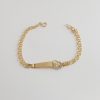 Pulsera para bebé con un chupete y placa para poder grabar el nombre. Oro amarillo y oro blanco 18 quilates. Tamaño: 14 milímetros.