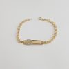 Pulsera para bebé con un oso y placa para grabar el nombre. Oro amarillo y oro blanco 18 quilates. Tamaño: 14 milímetros.