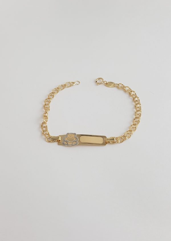 PULSERA BEBÉ OSO ORO BICOLOR 18 QUILATES