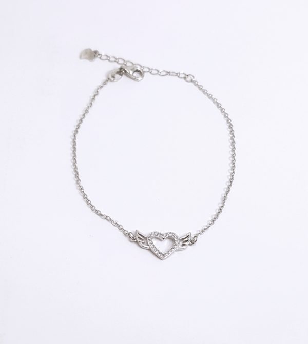 Pulsera corazon con alas circonitas plata de ley