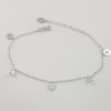 Pulsera plata con colgantes en forma círculos, monturas con zirconita y corazón, bañada en rodio, medida 16 centímetros mas 2,5 en extensible