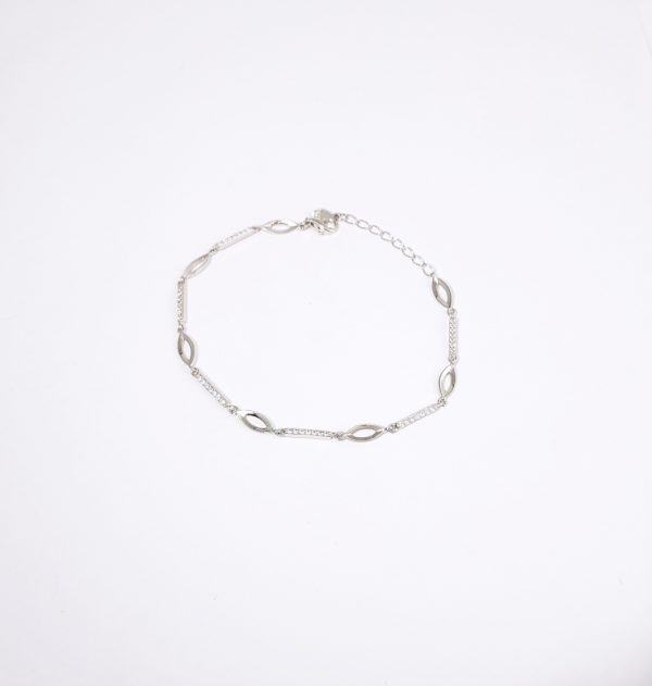 Pulsera plata con motivos ovales lisos y barras con circonitas, bañada en rodio
