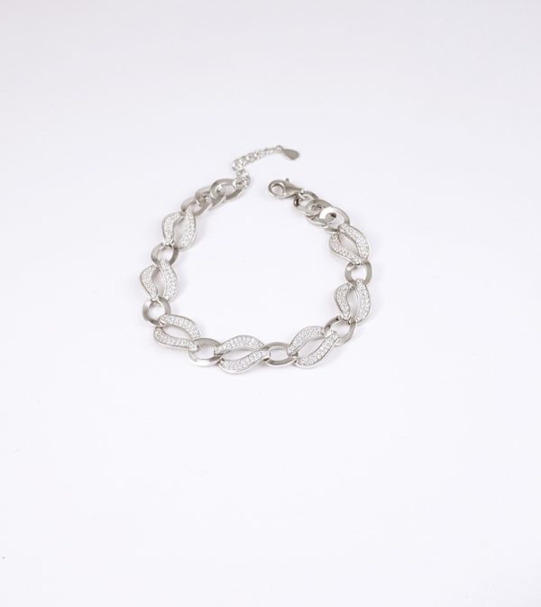 Pulsera plata eslabones con circonitas, bañado en rodio.