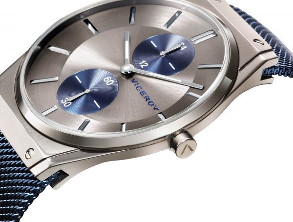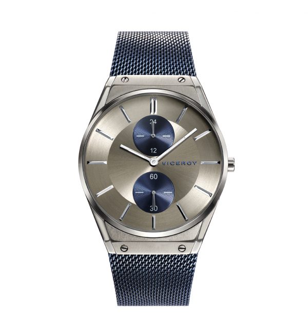Reloj Viceroy Acero IP Gris y Azul Multifunción, Impermeable 30 metros, Correa malla acero