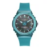 Caja de Aluminio verde con correa silicona verde , tres agujas, sumergible .
